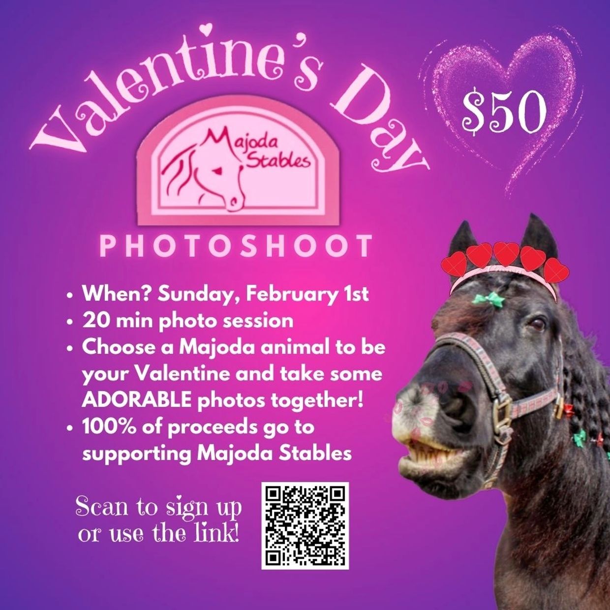We’re not horsing around - it’s time for a super special photo day at Majoda Stables on Sunday, February 1, 2026!
